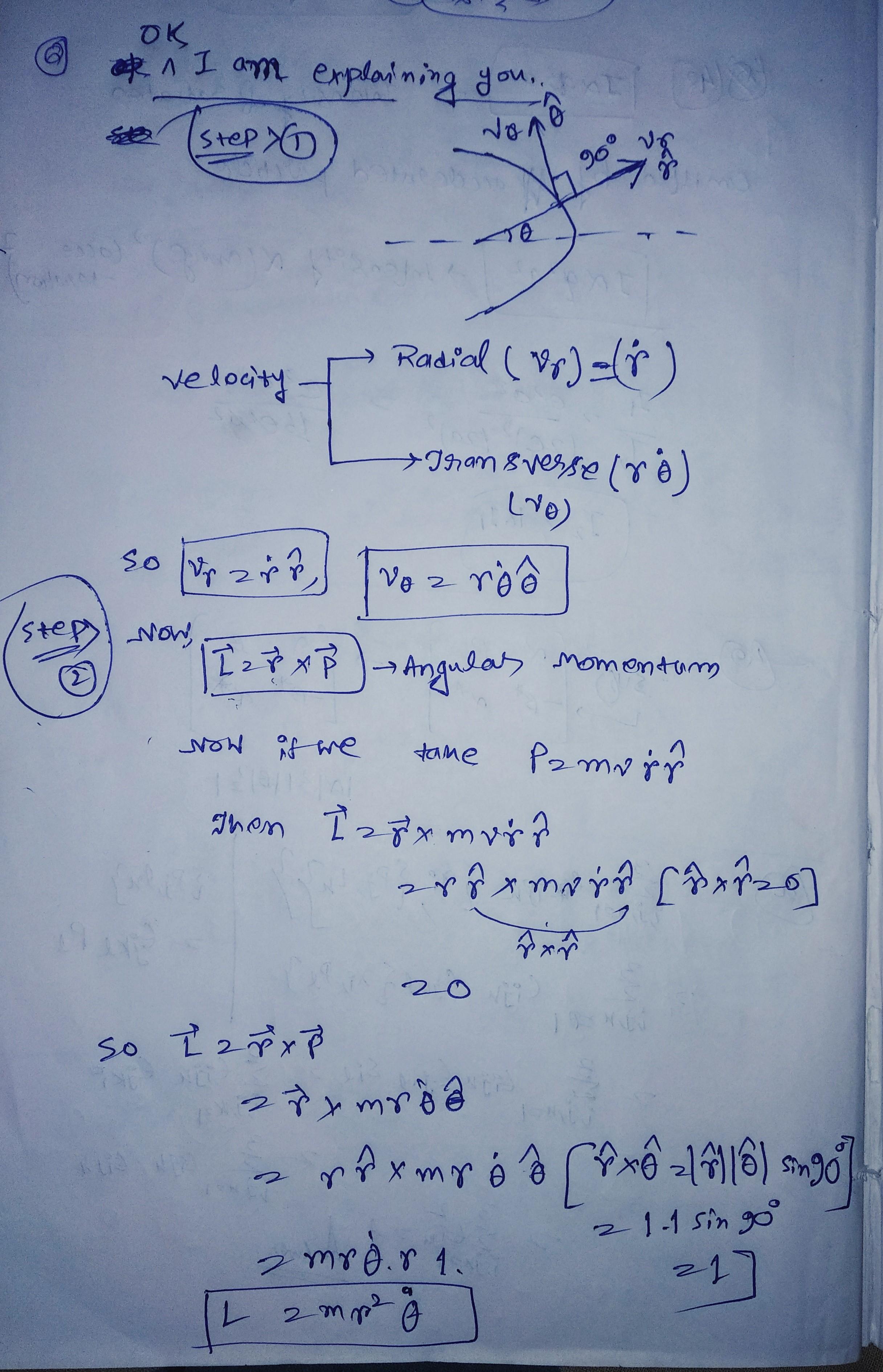 Please explain how the equation l= mvr= mr2theta got and expression for