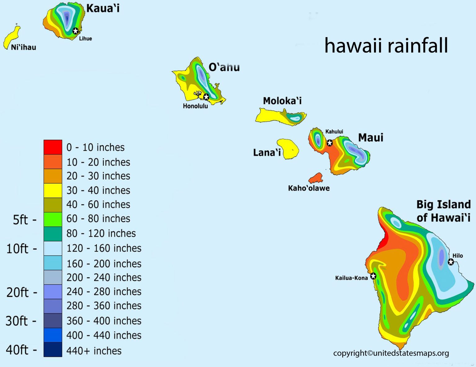 Hawaii Rainfall Map | Rainfall Map of Hawaii