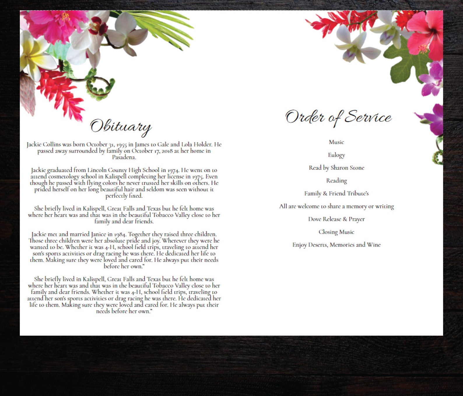 Hawaiian Funeral Program Template, Funeral Printable, Tropical Memorial