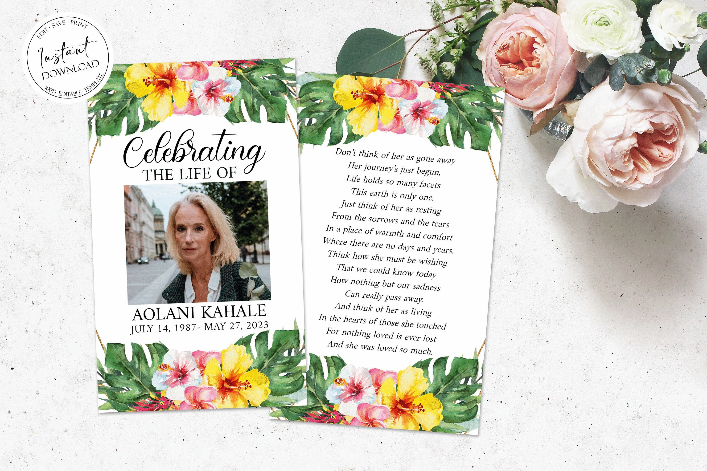 Editable Tropical Hawaiian Funeral Prayer Card Template - Etsy
