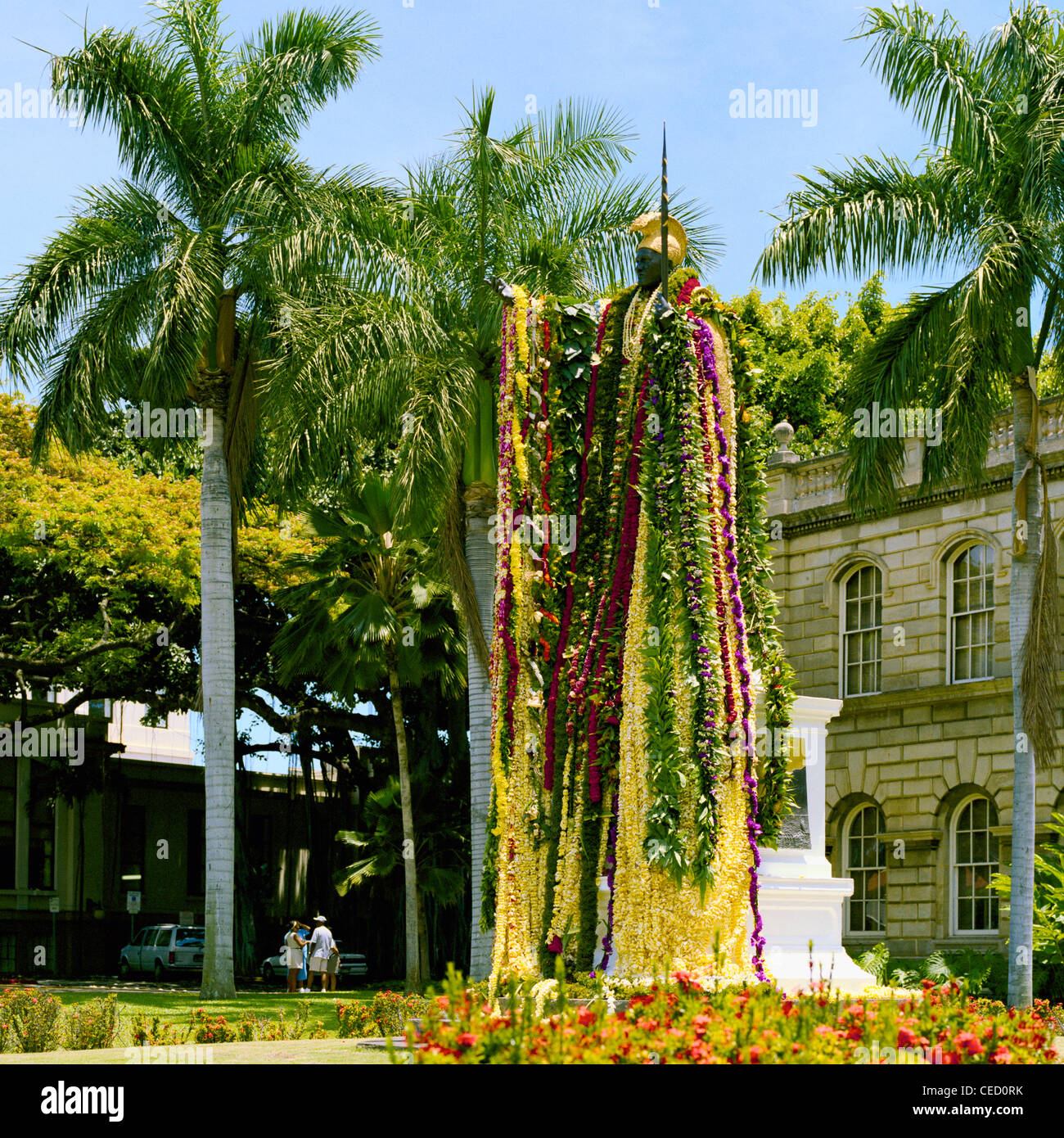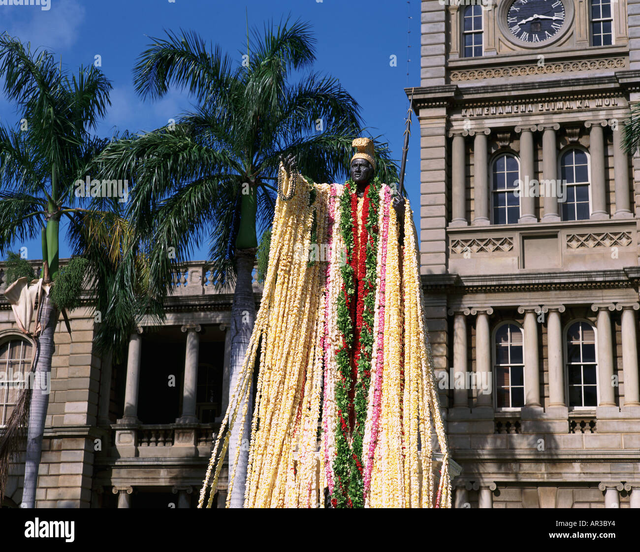 King Kamehameha statue with flower leis Honoluu Oahu Hawaii Stock Photo
