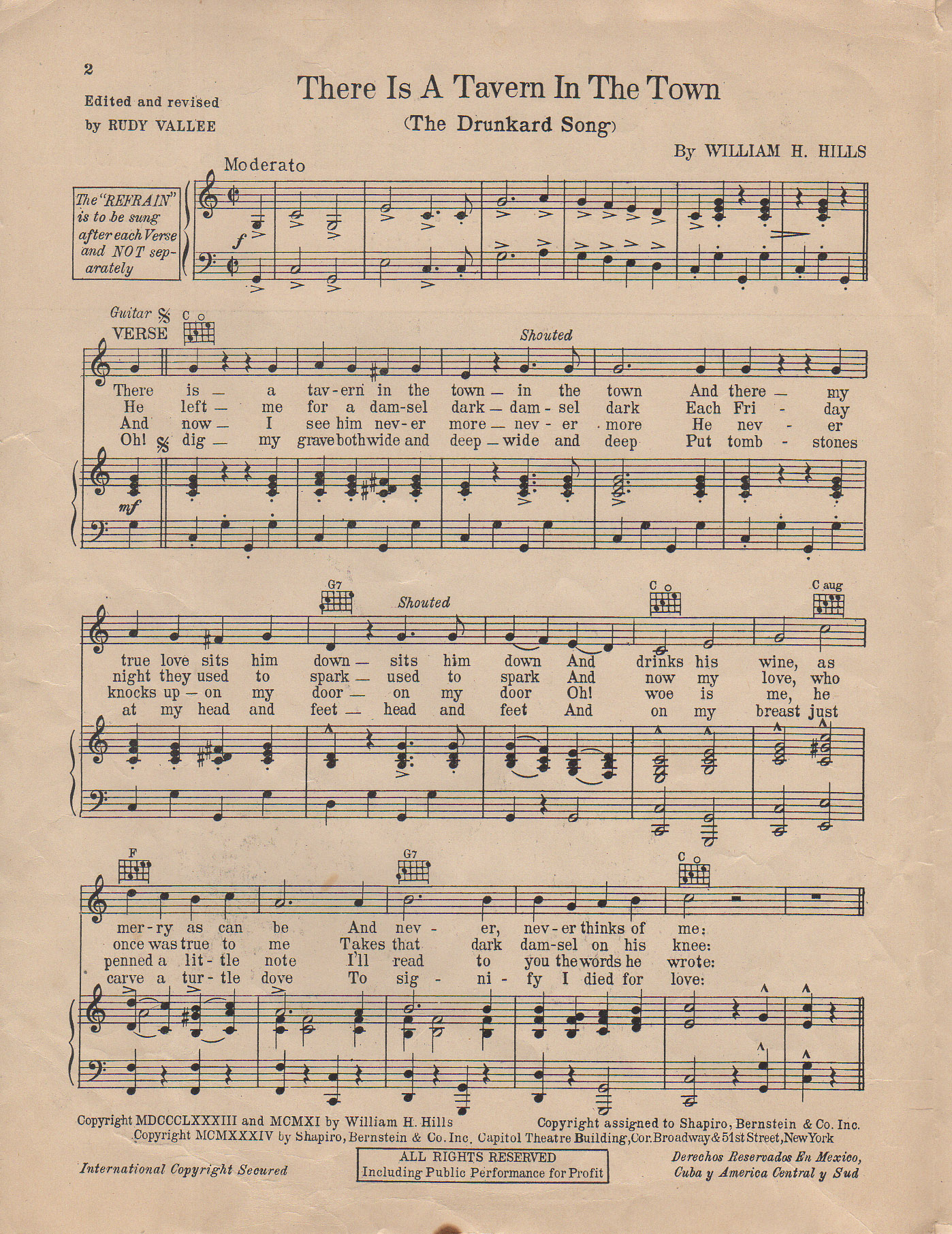 THERE IS A TAVERN IN THE TOWN - William H. Hills, Rudy Vallee, 1934
